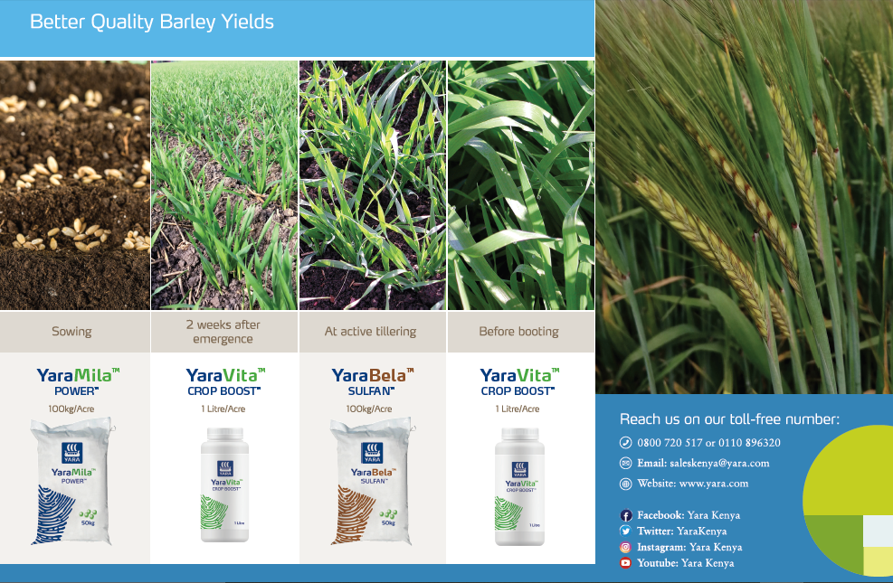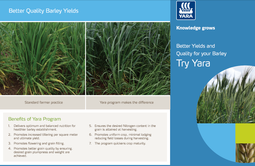 Yara's solid fertiliser and foliar programmes for barley are based around YaraBela and YaraMila solid fertilisers and the YaraVita foliar micronutrients.
