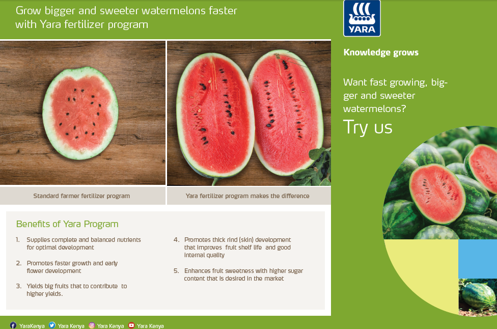 Disclaimer: To the best of Yara’s knowledge and belief the information contained herein is accurate as of the date compiled. However, Yara makes no representation, warranty or guarantee as to the information’s accuracy, reliability, completeness, timeliness and/or use. It is the user’s responsibility to determine the suitability and completeness of such information for the user’s own particular use or purposes. Such information must be adapted to suit local conditions and the user should always read the label for each product before use. Yara does not accept any liability for any loss or damage that may occur from any use of this information.