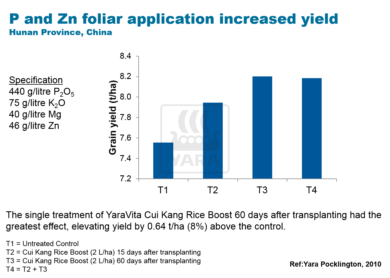 Foliar P and Zn applied at heading is an efficient measure to boost yields on low P and Zn soils.