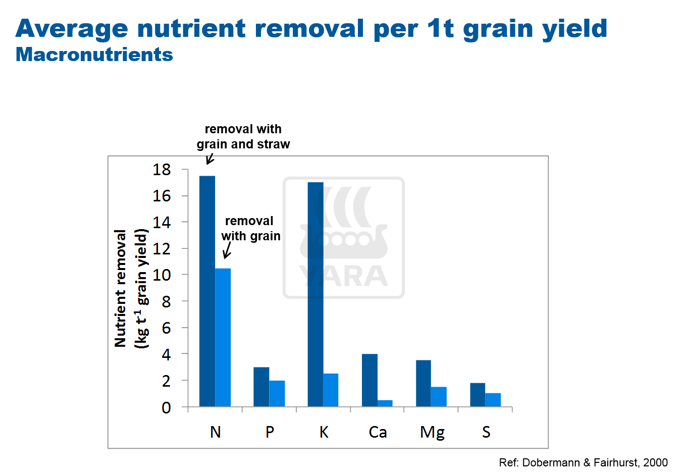 For calculating fertilizer requirements the nutrient removal of rice crop has to be considered. Field research in Asia has shown that for a yield increase of 1 t/ha and balanced N, P and K nutrition, rice consumes: