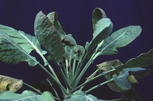 First leaves show chlorosis in the intercostal fields, later on they are uniformly light green or yellow. Often a reddish discoloration is visible.