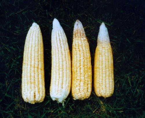 Potassium deficiency on cobs (right)