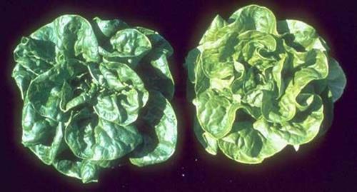 Nitrogen deficiency (right) compared to optimum supply (left)