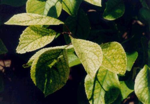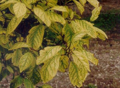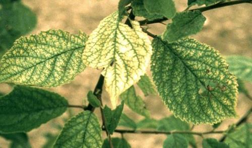 Deficiency leads to characteristic chlorotic yellowing, and sometimes bleaching, of new leaf growth. Leaf veins remain green.
