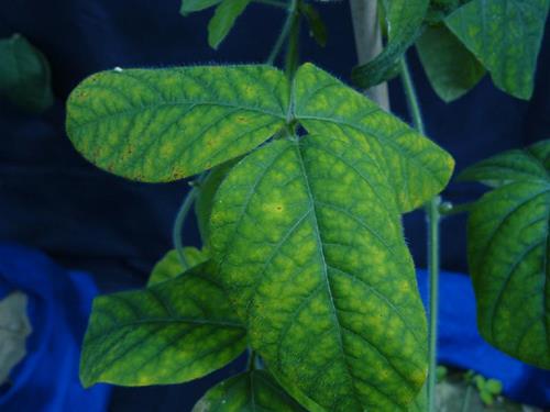 Mg deficiency symptoms are light green to yellow chloroses of interveinal tissues. Leaf margins are bent down. The older, lower leaves are affected first.