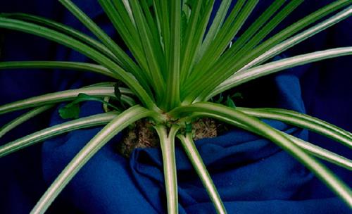 Affected plants show stunted dark green or purple foliage acccompanied by wilting symptoms.The plants form lateral leaf rosettes.