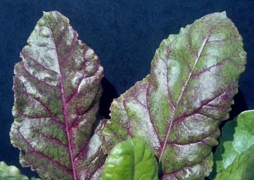 Phosphorus deficiency inhibits growth of the sugar beet plants, and the plants have a stiff appearance.